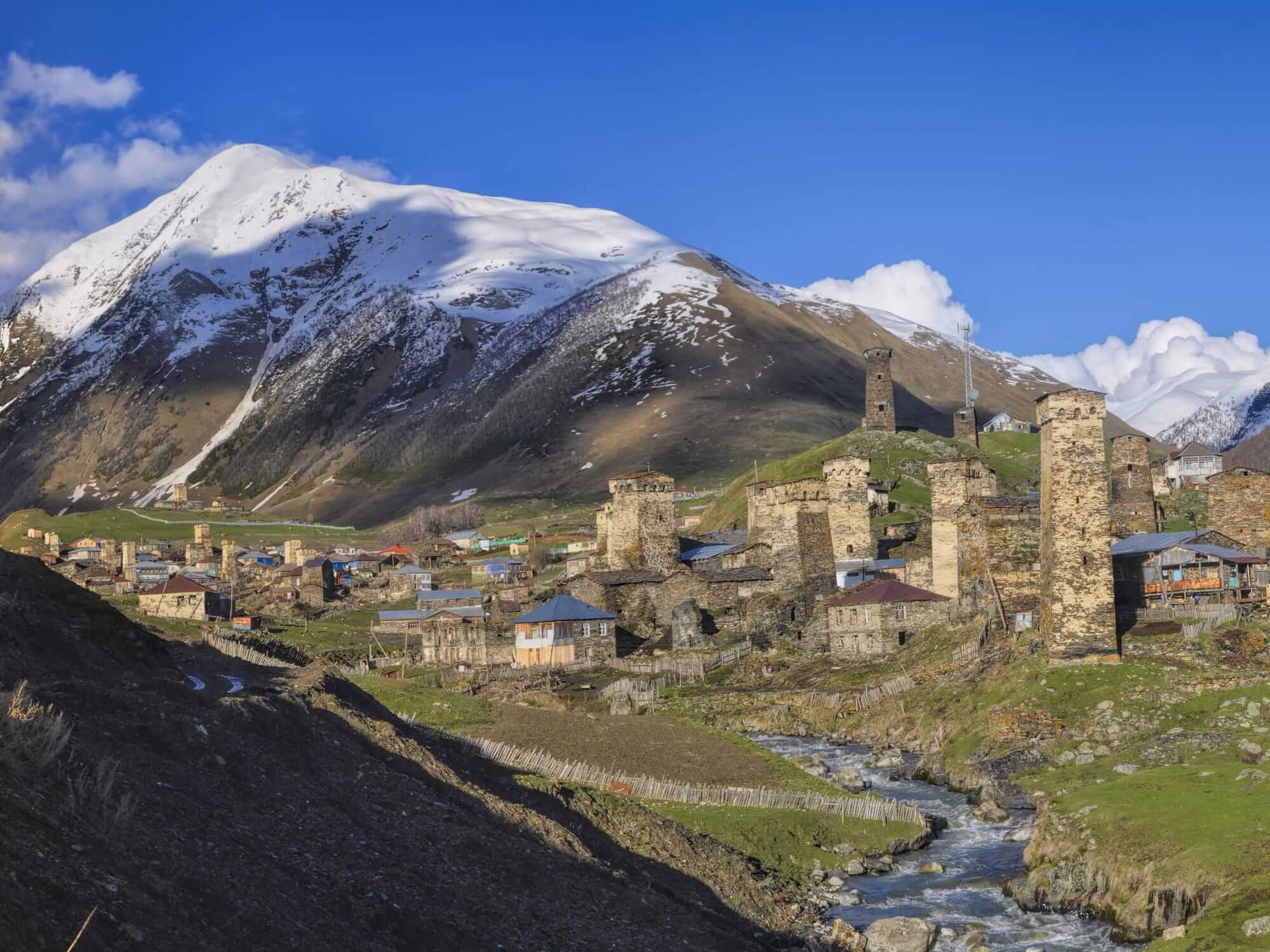 Climbing to the top offers breathtaking views of the Caucasus peaks, including Mount Shkhara, Georgia’s highest summit. The sight of dozens of towers rising above green meadows and snow-capped mountains evokes both wonder and reverence — a powerful reminder of how architecture, culture, and nature intertwine in this remote frontier.