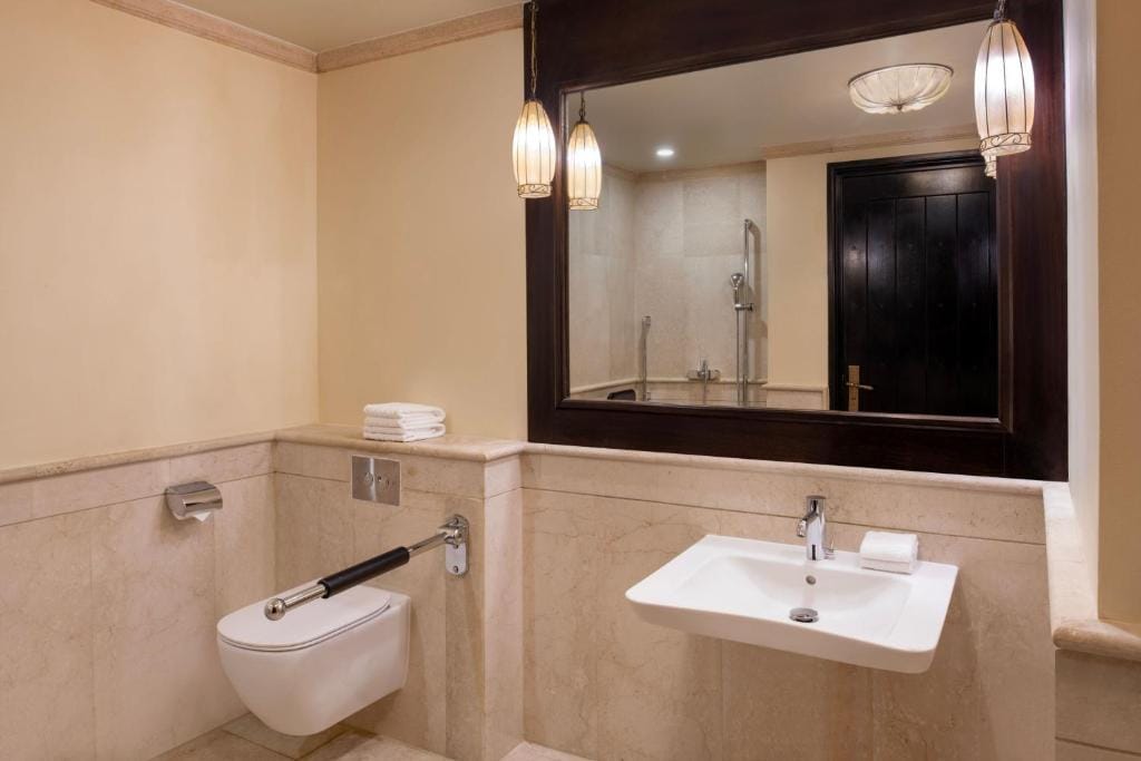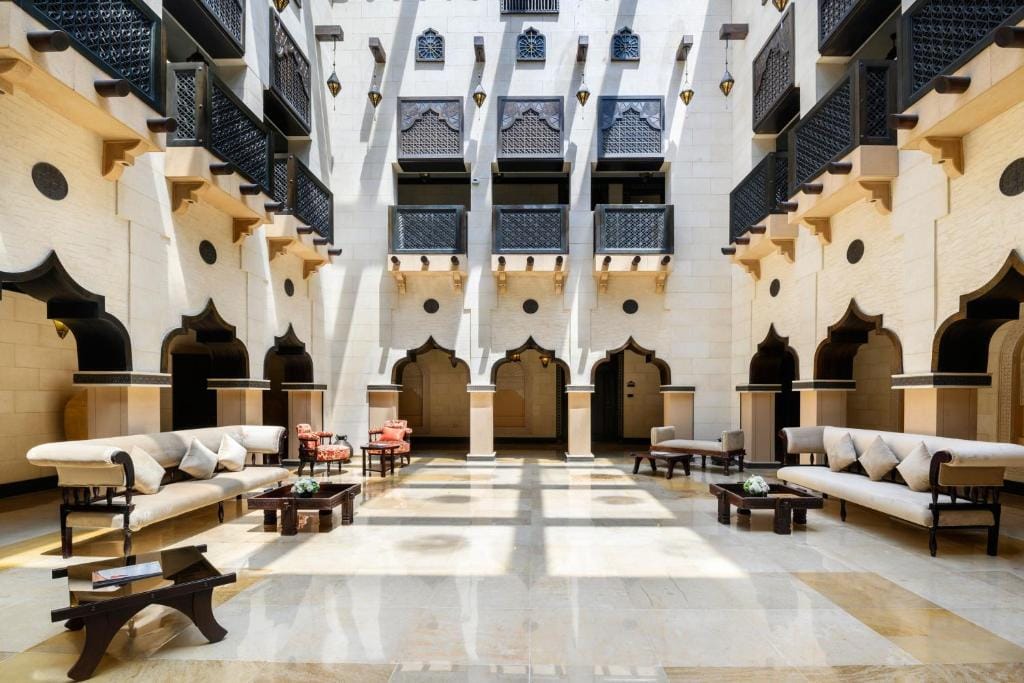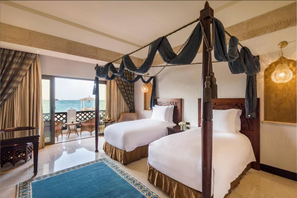 The Spa at Sharq Village is a haven of relaxation, offering a wide range of skin therapies and massages. Guests can unwind in the lantern-lit relaxation area or enjoy the hammam and sauna facilities. The hotel is also family-friendly, providing a children’s shaded pool, a garden, and daily activities at the Ritz Kids Club.