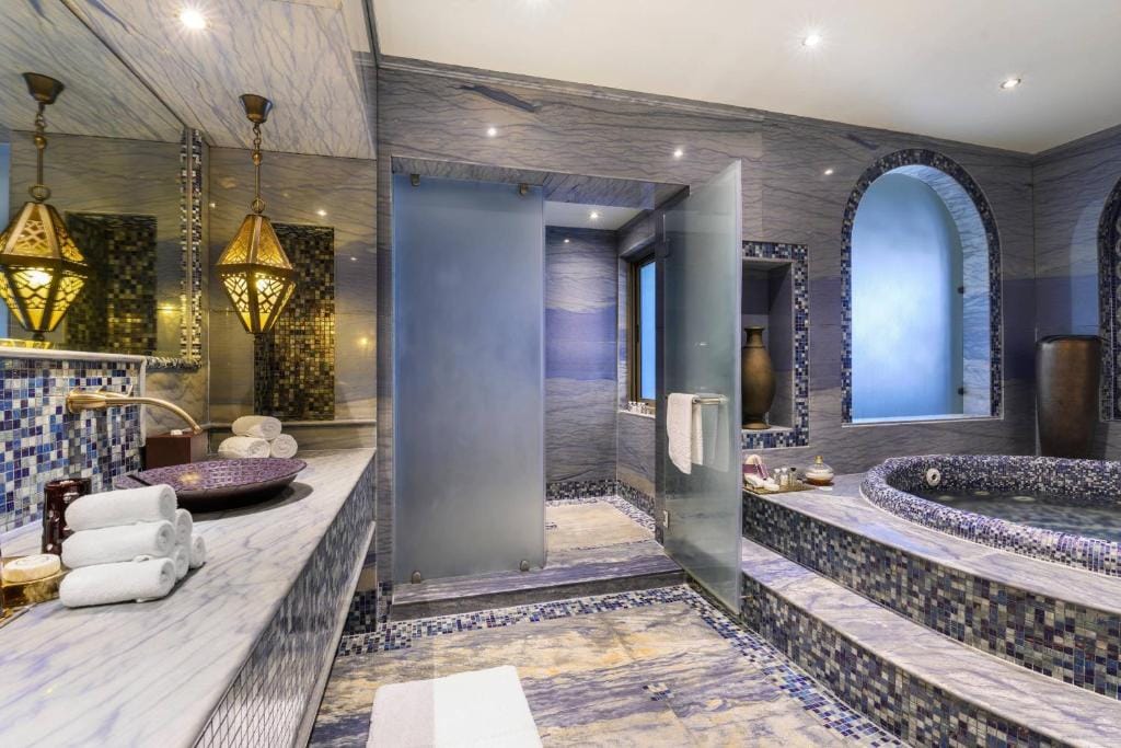 The resort spans 1148 feet of coastline, featuring a 1,400-m² infinity pool and an expansive wellness center covering 70,000 ft². With 174 rooms, each designed with oriental décor, wooden ornaments, canopied beds, a private balcony, and a marble bathroom with a deep-soaking bath and rain shower, the hotel promises an immersive luxury experience.