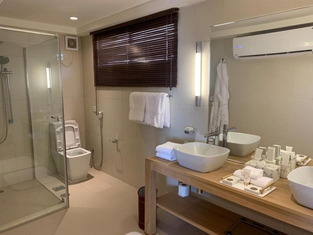 Each unit at Ashar Tented Resort is equipped with a terrace and a coffee machine, with selected rooms featuring a fully equipped kitchenette. Every unit has a private bathroom adorned with bathrobes and slippers for a touch of luxury.