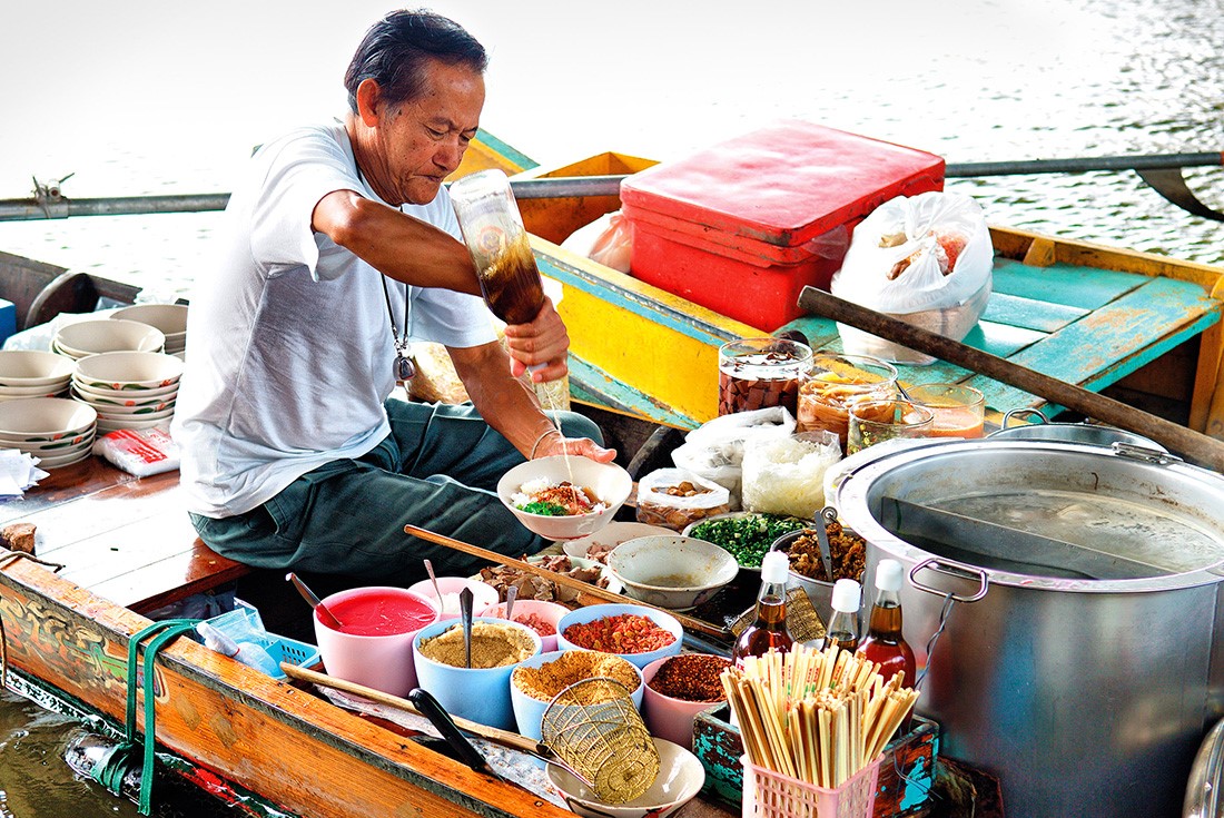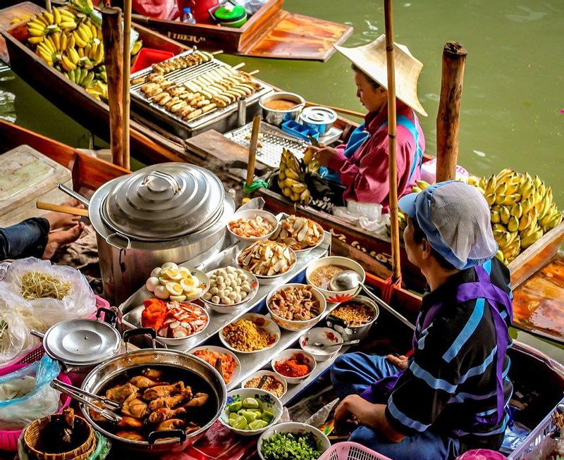 Visit floating eateries and boat noodle stalls.