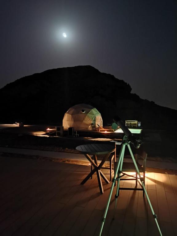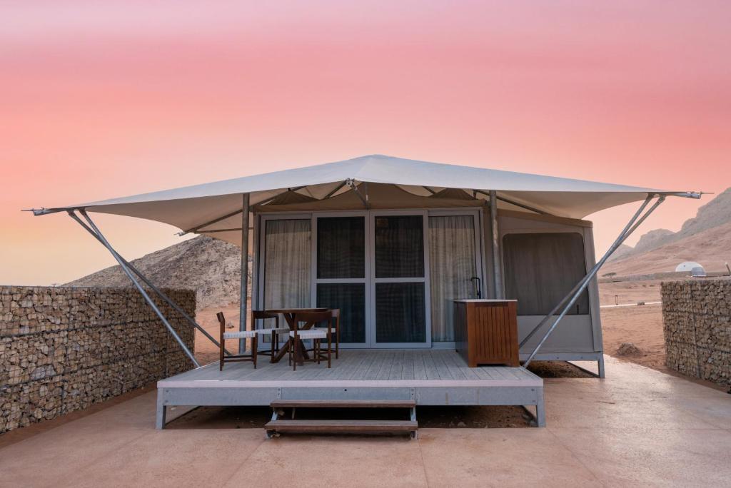 On clear days, guests can head outside to enjoy the luxury tent’s outdoor fireplace, or simply kick back and relax.